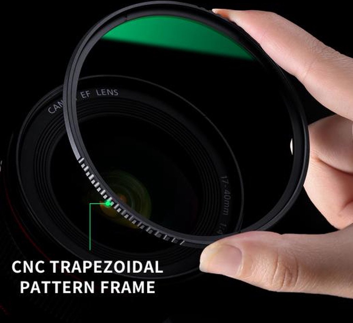 K&F Concept begrijpt dat je in het veld snel wilt kunnen schakelen. Het frame is voorzien van een CNC-trapeziumvormig patroon. Deze extra textuur zorgt voor maximale grip, zelfs bij koud weer of wanneer je handschoenen draagt, waardoor het op- en afschroeven van het filter zeer eenvoudig is.